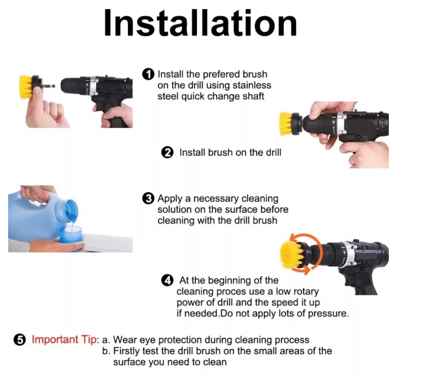 Dieses 4-in-1-Bürstenset ist ein absolutes Muss für jeden Heimwerker! Schnell und einfach auf allen Bohrmaschinen montiert. Die Bürsten werden in einer hochwertigen Qualität und für Langlebigkeit geliefert, sodass Sie viele Jahre Freude an dem Set haben werden. Die sanften Nylonstrohhalme zerkratzen die Oberfläche nicht.