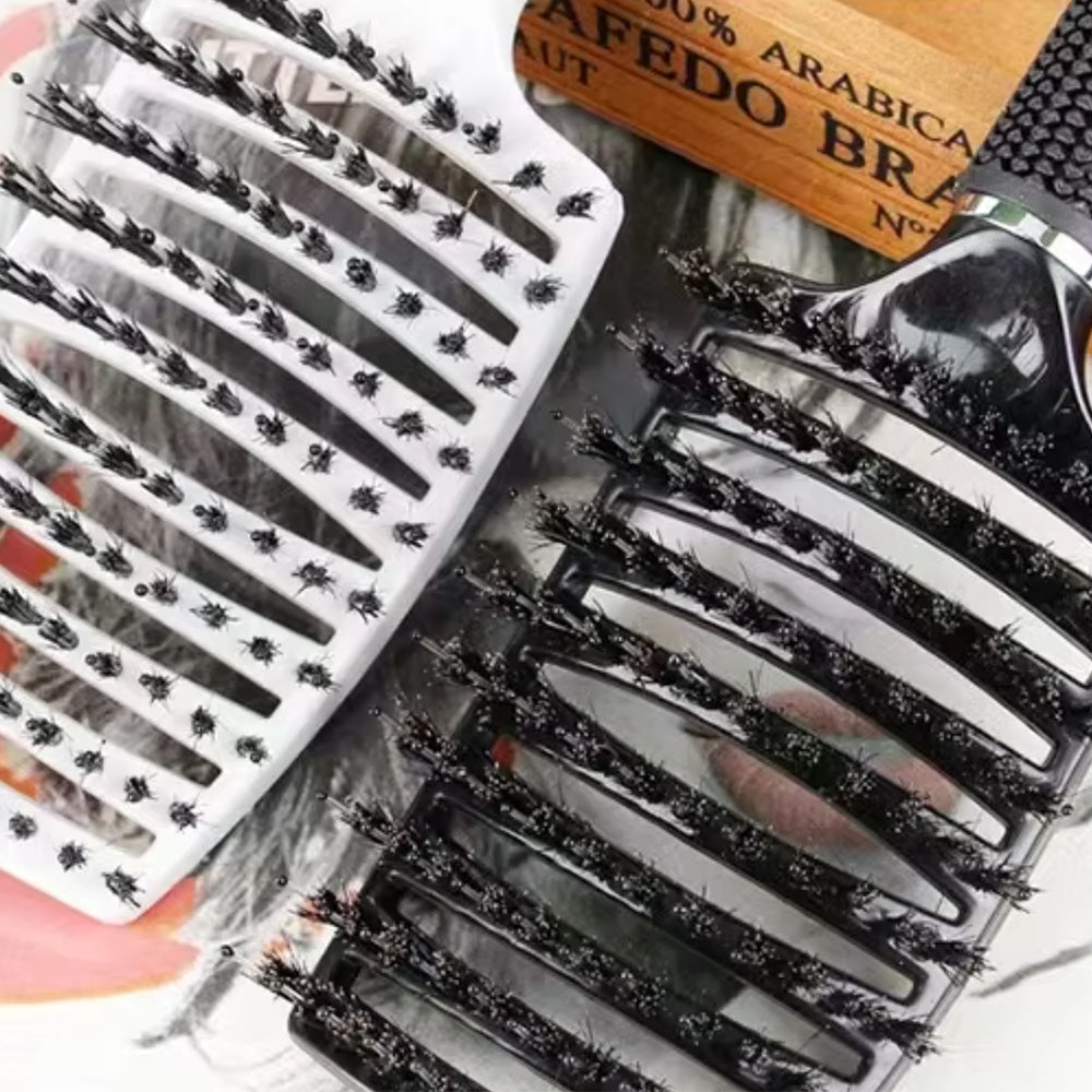 Schluss mit verfilztem Haar und Knoten mit dieser professionellen Haarbürste, die mühelos durch sowohl nasses als auch trockenes Haar gleitet. Die gebogene und belüftete Form sorgt für ein angenehmes Bürsterlebnis und verkürzt gleichzeitig die Trocknungszeit beim Föhnen.