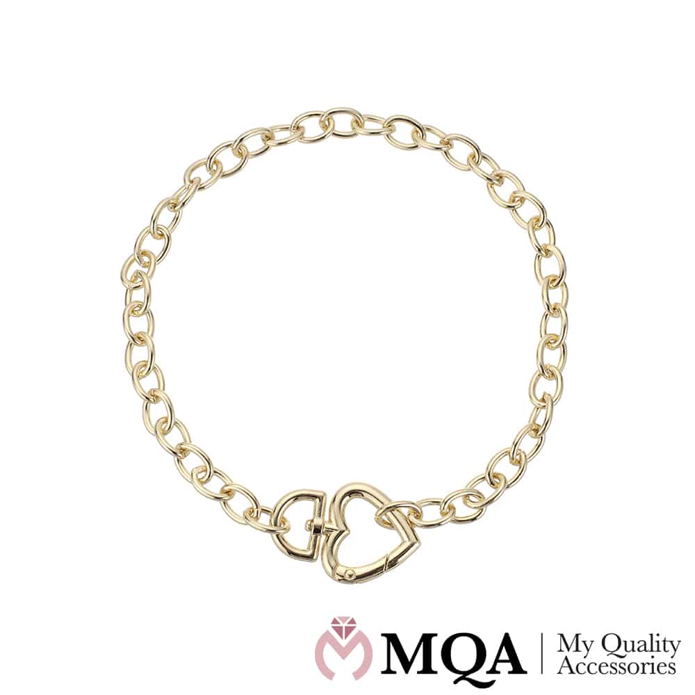 Schöne goldfarbene Halskette mit Herzverschluss, bestehend aus einer breiten Kette. Eine schöne Halskette von hoher Qualität mit einem aufregenden Design, perfekt für den Alltag und für Partys.