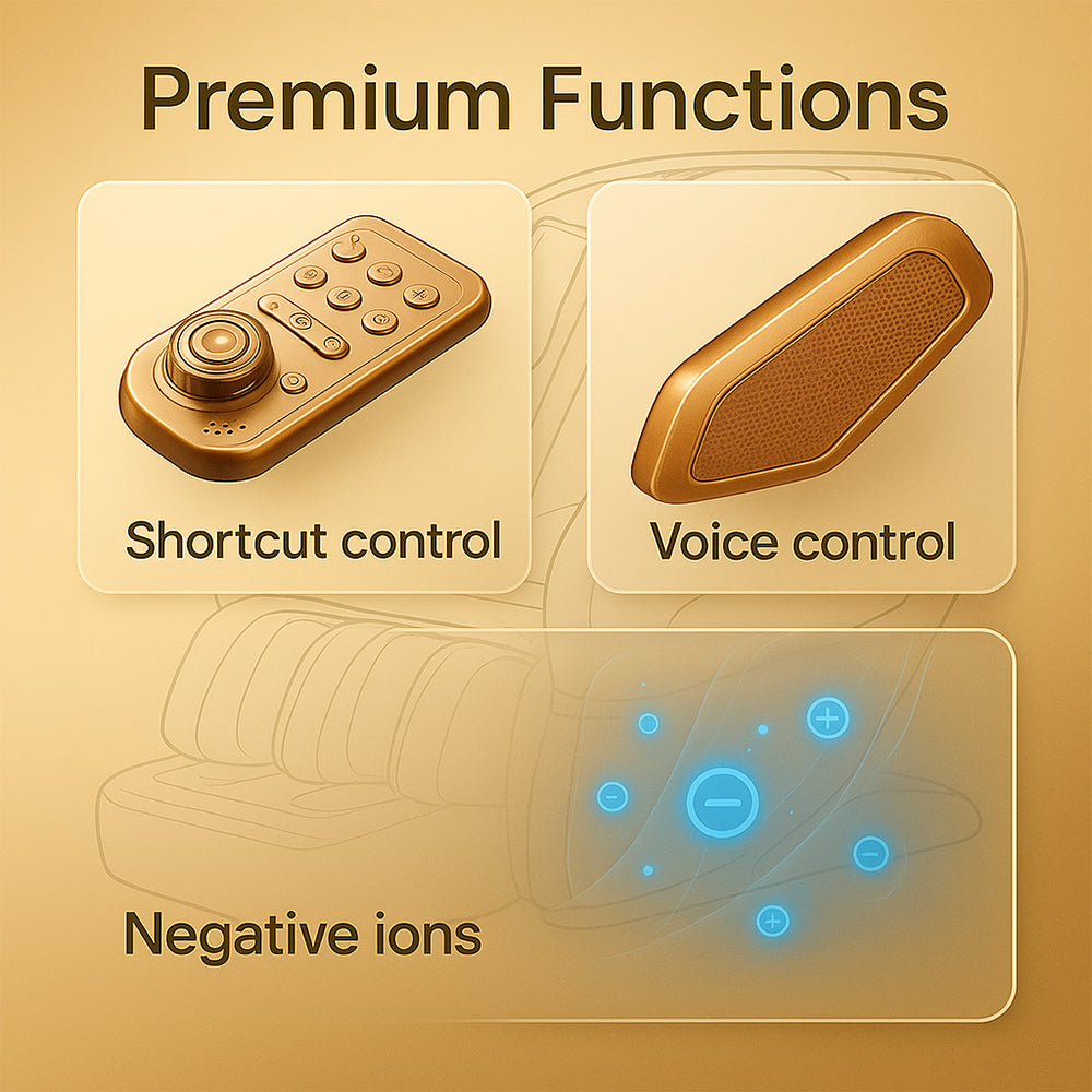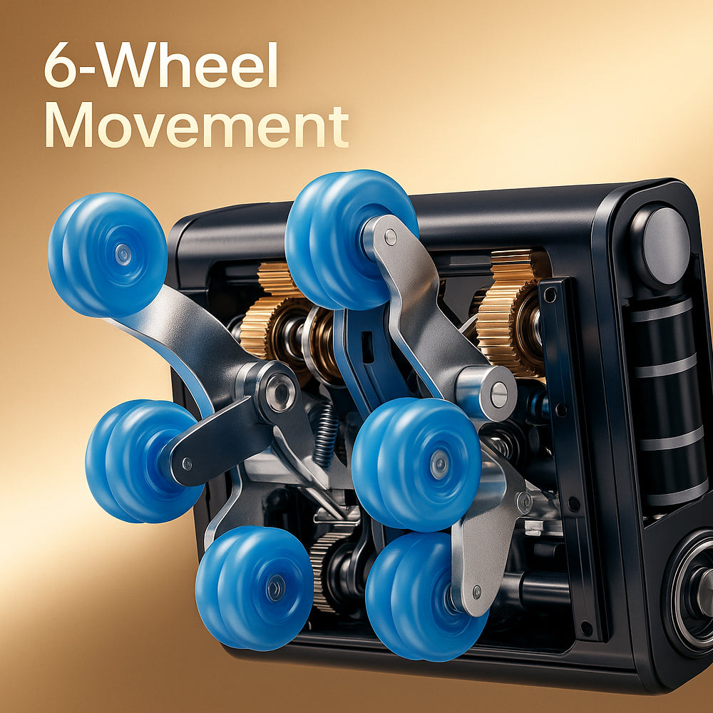 Ein besonderer Vorteil des M5 4D Luxus Pro+ ist die anpassbare Nackenfunktion. Beim Start können Sie den Ausgangspunkt der Massagerollen manuell einstellen, sodass diese unabhängig von der Körpergröße genau im Nackenbereich wirken. Ideal, wenn mehrere Personen den Sessel nutzen.