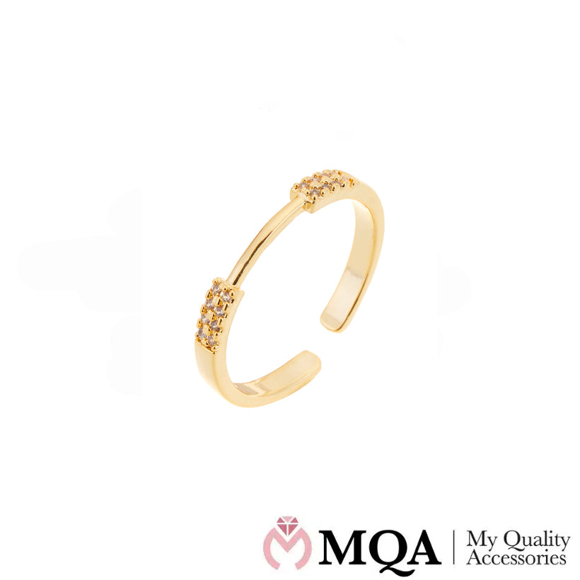 Verleihen Sie Ihrem Look mit diesem goldfarbenen Ring in einem stilvollen und klassischen Motiv das gewisse Etwas. Der Ring ist mit zwei Reihen klarer Steine verziert. Sie erhalten hier ein wunderschönes Schmuckstück, an dem Sie sicher viel Freude haben werden und das perfekt zu festlichen Anlässen und anderen Zusammenkünften passt.