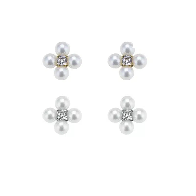 Ohrringe mit kleinen Perlen, Gold oder Silber