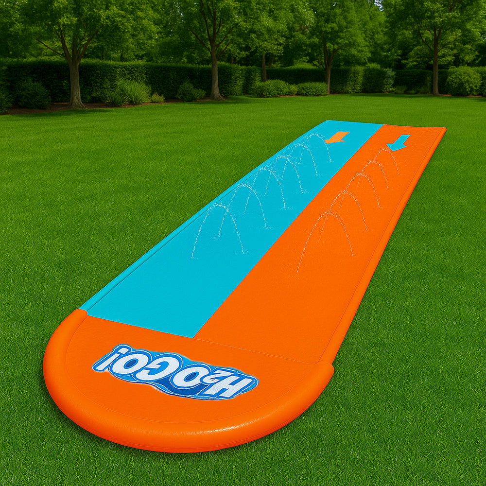 Verwandle deinen Garten an einem heißen Sommertag in einen Wasserpark – einfach den Gartenschlauch anschließen, in die Badehose schlüpfen und schon ist stundenlanger Spaß für alle Wasserratten innerhalb der Familie angesagt. Du erhältst eine große Rutschbahn mit einer Länge von 488 cm.